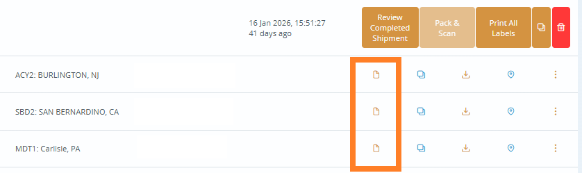 Important: BOL's can be downloaded on the working shipment page by pressing the BOL icon.